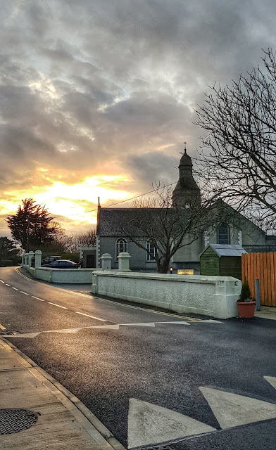 The weather had disimproved rapidly. The beautiful sunrise had turned into a wet grey day. However some days just never stop giving and this Tuesday was one such day. As we walked back to the car, I noticed the sun setting behind the church. I settled my ladies into the car and they watched in astonishment as I began to walk to the road. When my cousin figured out what I was up to, she also jumped out of the car to catch the same photograph. I now had the perfect pair. Sunrise, sunset!